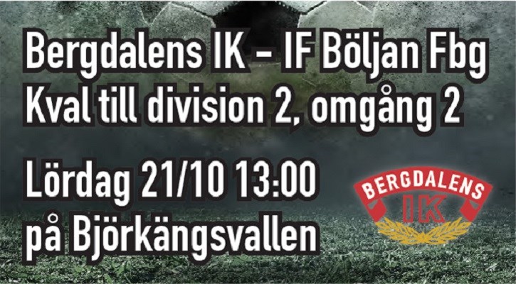• Bergdalens IK-Hittarps IK i kvalomgång 2 på lördag 28/10